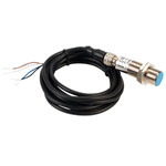 This inductive sensor has a long M18 cylindrical body manufactured from chrome-plated brass. The body is proof against water, oil, acid and alkaline. An LED indicator lamp is provided for status indication. Widely used in counting, measuring, RPM measuring applications in chemical, paper manufacturing, and other industries.