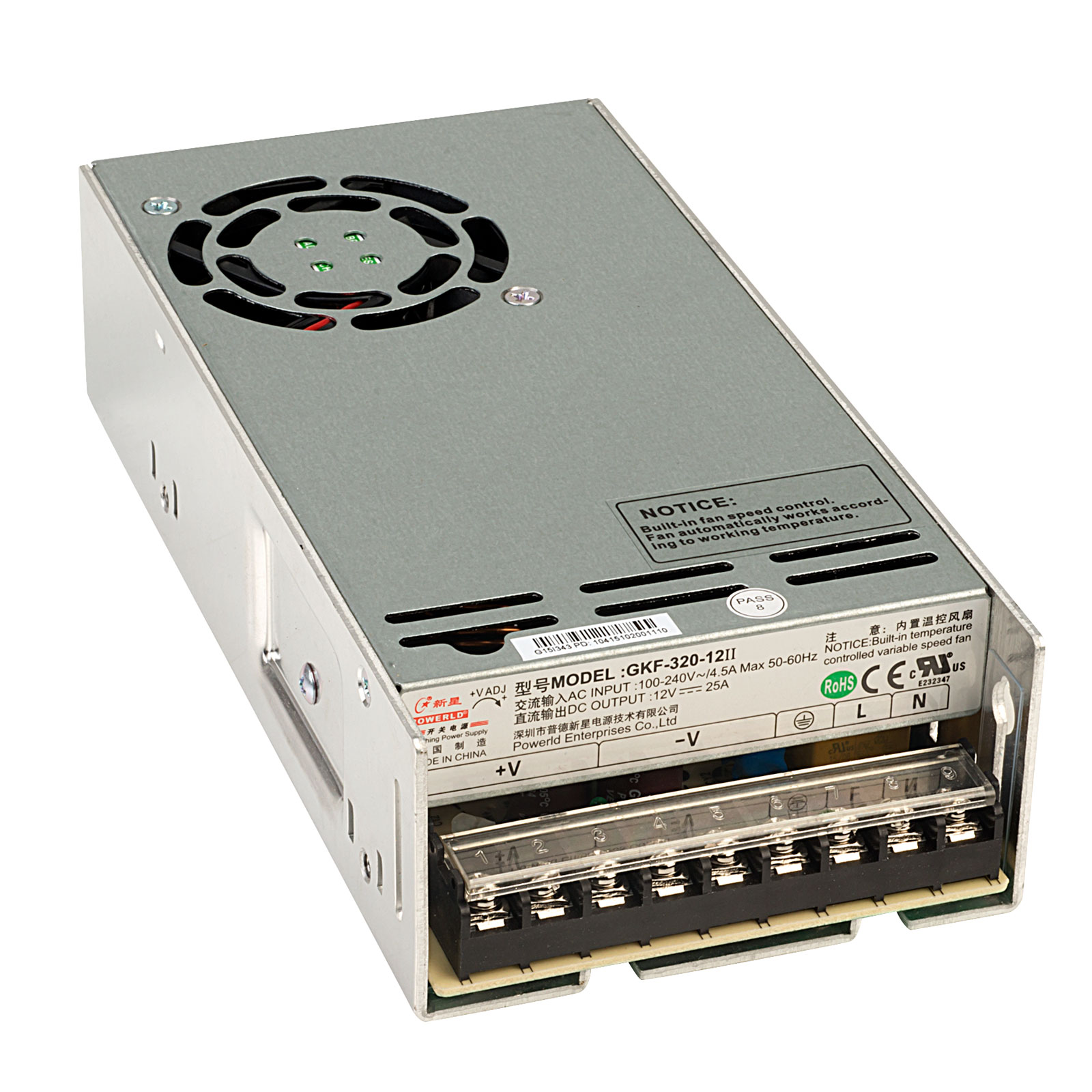The TR Electronics GKF-320-12II is a 12V DC 320W Enclosed Power Supply Unit with PFC for DC power requirements. The GKF-320-12II provides a Single Output Power solution for industrial control and automation applications, which in the case of the GKF-320-12II, is 12V.