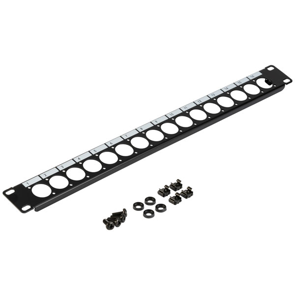 The TUK FFDU16 D Universal 19" rack mountable XLR type 16 port panel is suitable for D Universal and Neutrik D series XLR type connectors.
