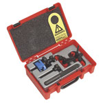 Set comprises VS777, VS777E and VS780 to provide timing belt pulley locking, to retain timing positions, on single and twin cam petrol and diesel engines. These locking tools act as a second pair of hands to hold camshafts in position during timing belt replacement. Huge range of applications from closely positioned sprockets on many twin cams to more widely spaced cam/injector pump sprockets on certain diesel engines. VS777 incorporates adjustment to cover different sprocket diameters and tooth pitches.