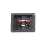 Twin Loudspeaker Plate, Brass Contact Material, Gold Contact Plating, 73 x 94mm Panel Cut Out, Loudspeaker Connection Plates with 2-pairs of Terminals with Removable Bridge Links between Both Sets of Connectors, Available with Twin Insulated Terminals in Red and Black