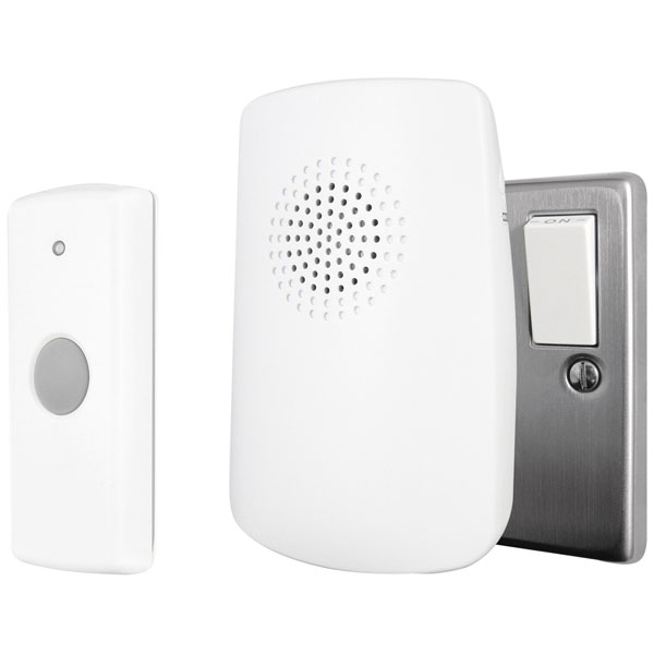 The Uni-Com Plug-In Door Chime can be inserted into any 13A socket. The extensive wireless range of up to 120m means the chime unit can be placed in any room around the home or in a detached office at the back of your garden.