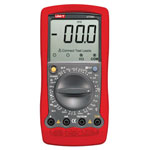 The meter is a handled, battery-operated tool for measuring electrical parameters.