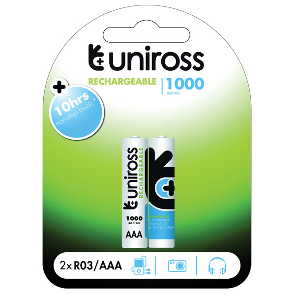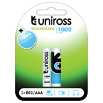 Uniross AAA Batteries 1000mAh Performance Rechargeable range NiMH 2 Pack