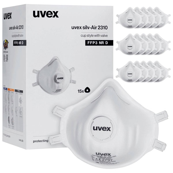 uvex 8762310 silv-Air Dust Mask FFP3 Valved 15 pcs EN149:2001+A1:2009