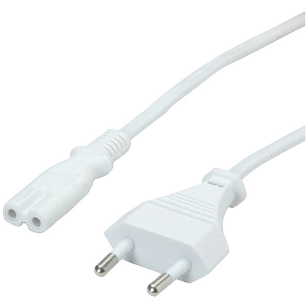 Value 19.99.2090 Mains Cable 1m White Moulded for Notebooks & Appliances