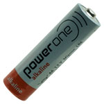 Varta Power One AA size top-quality non-rechargeable alkaline battery, with six times the energy content of standard zinc-carbon types.