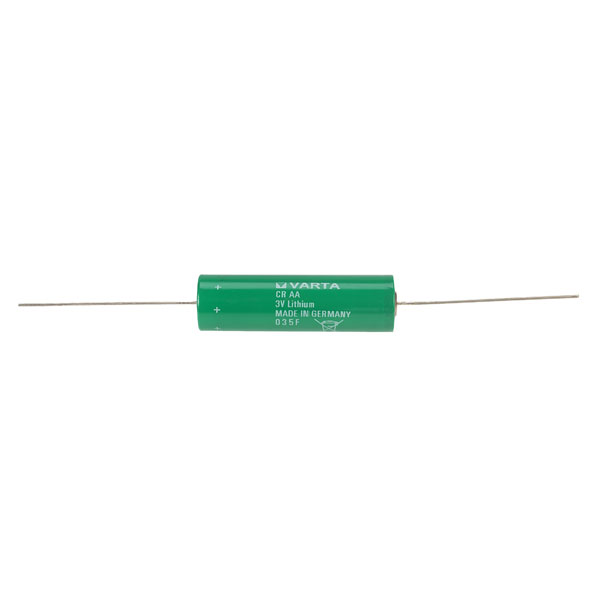 Lithium Cell, Cylindrical, 2000mAh Capacity, 3V Nominal Voltage, AA Size Battery, Lithium Manganese Dioxide, 20mA Discharge Current, Wire Lead Terminal, 14.75mm Diameter, 50.5mm Long, 21.5g Weight, High Energy Density, Ten Year Shelf Life, Low Self Discharge, Varta