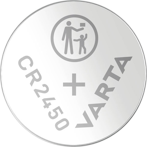 The Varta Button cell CR 2450 is a 3-volt lithium battery available in a pack of four, known for its reliable performance. Manufactured by Varta, it is ideal as a wristwatch and pocket calculator battery. This button cell is widely used in various electronic devices, providing long-lasting power.