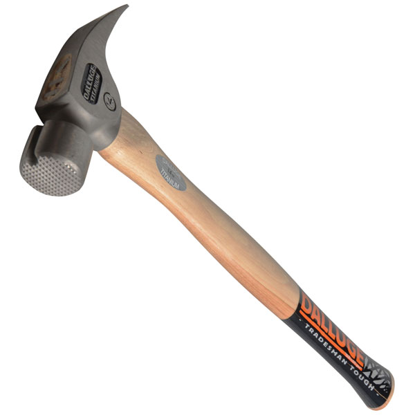 The Dalluge Titanium Lite Hammer has a lightweight, precision cast, one-piece titanium head. It swings faster with less effort for increased nail driving power and a milled face which grips the nail head for a more positive drive. NaiLoc® magnetic nail holder for maximum reach and one hand nail starting. With a 15in straight American hickory handle, that has been ergonomically designed, improving balance while reducing shock transfer.