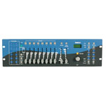 A fully functional 48.5cm (19in) rack mount controller. The VDPC174 allows you to program 12 scanners with 16 DMX channels each, 30 banks of 8 programmable scenes, 6 chases of 240 scenes and all this by means of 8 channel sliders, a joystick and other buttons. By means of the joystick you can easily and more accurately control the movement of a fixture. To increase your ability to dazzle the audience, this unit allows you to assign and reverse DMX channels. In addition, two units can set up communication so that they can send or receive a complete file dump.