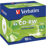 This CD-RW 4x 700MB from Verbatim is a recordable/rewritable disc offering superior quality recording - ideal for sharing computer data, home videos, photos and music.