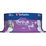 Verbatim 43539 DVD+R Wide Inkjet Printable ID Brand 4.7GB 120min - Pack Of 25