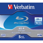This BD-R SL LTH 25GB 6x from Verbatim is a blank Blu-ray disc that offers 3 to 5 times the storage capacity of a standard recordable DVD disc, enabling the recording, rewriting and playback of high definition video (HD).