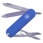 The Classic SD Swiss Army Knife has a small blade, a nail file with squared tip to use as a small screwdriver, scissors, a toothpick and some tweezers.