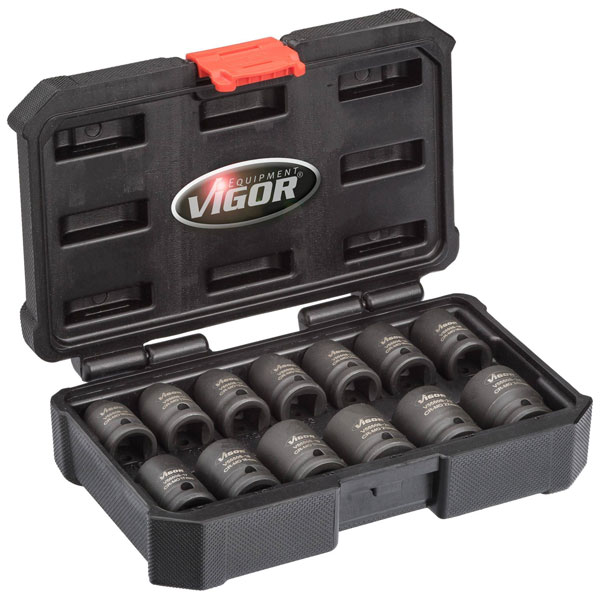 The Vigor V5550S Kraft bit set is a 13-piece 1/2" socket wrench bit set designed for precision and durability. Manufactured by Vigor, this handheld tool set is ideal for various hand tool applications. It is commonly used for mechanical tasks requiring a reliable ratchet set.