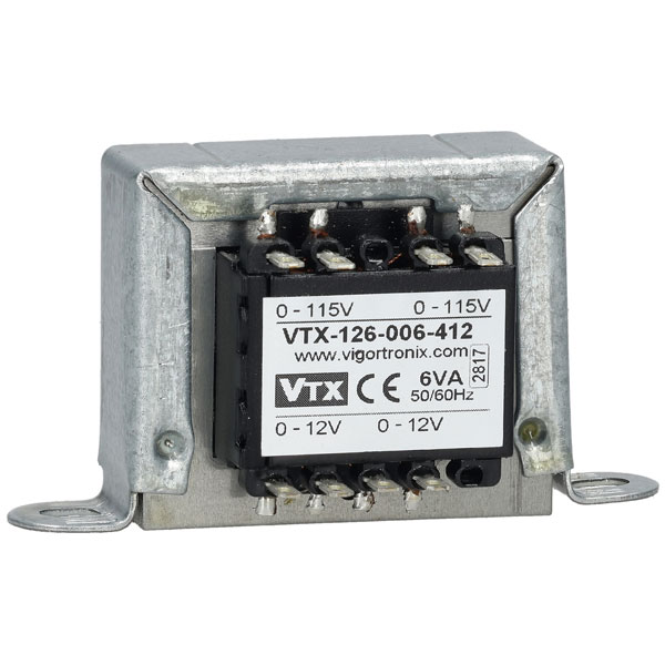 Vigortronix VTX-126-006-412 Chassis Mount Transformer 2 x 115V 6VA 12V+12V - A comprehensive range of general purpose chassis mounting mains transformer, with mounting clamp connection.