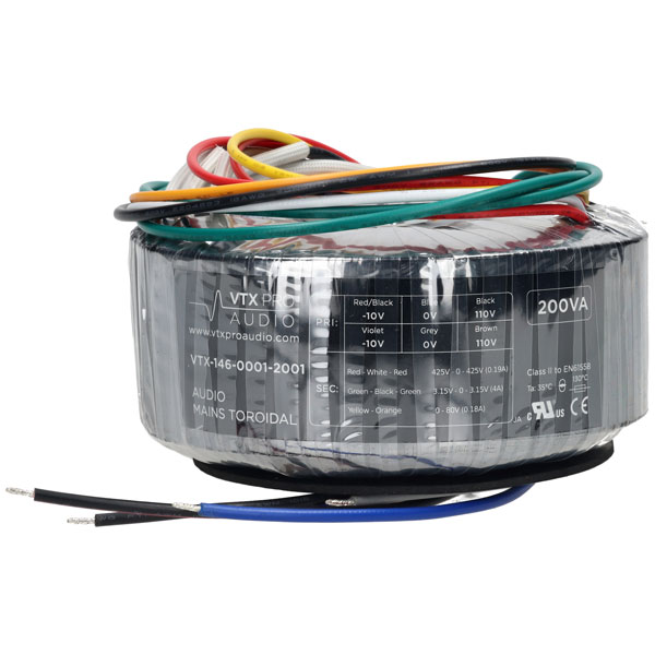 An efficient and compact electrical audio component, the VTX-146-0001 Series is specifically used in audio equipment to convert high-voltage AC mains power into lower voltages suitable for use by audio circuits. Its toroidal (donut-shaped) core design minimises electromagnetic interference (EMI) and hum, resulting in cleaner power delivery and improved sound quality. It is favoured in high-fidelity audio systems for its low noise, high efficiency, and compact size. These toroidals are made with 2 layers of GOSS band shielding for added noise elimination.