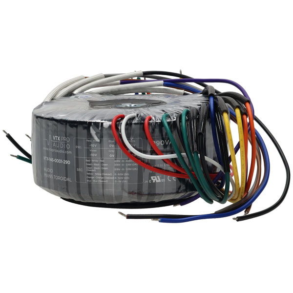 An efficient and compact electrical audio component, the VTX-146-0001 Series is specifically used in audio equipment to convert high-voltage AC mains power into lower voltages suitable for use by audio circuits. Its toroidal (donut-shaped) core design minimises electromagnetic interference (EMI) and hum, resulting in cleaner power delivery and improved sound quality. It is favoured in high-fidelity audio systems for its low noise, high efficiency, and compact size. These toroidals are made with 2 layers of GOSS band shielding for added noise elimination.
