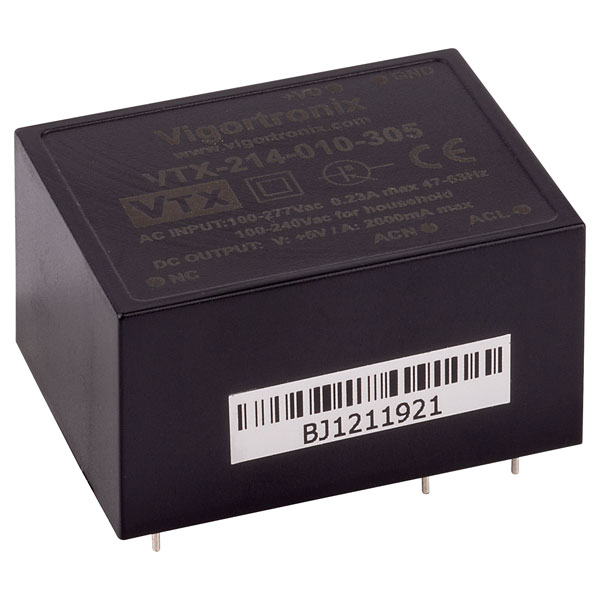 Vigortronix VTX-214-010-305 10W Ultra Compact AC-DC Converter 90-305V - 5V