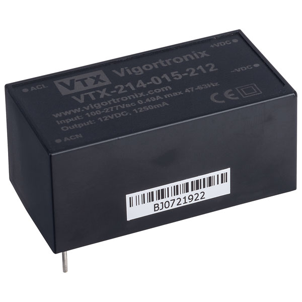 A 12V 15W mini AC-DC convertor that features low height, low standby power and a regulated single output. A wide input voltage range makes it suitable for a wide variety of applications.