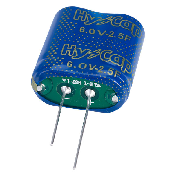 A 2.5F 6V EDLC supercapacitor module that consists of 2x single cells connected in series. The eco-friendly manufacturing processes give a device that has higher power density with low ESR, and a longer life.