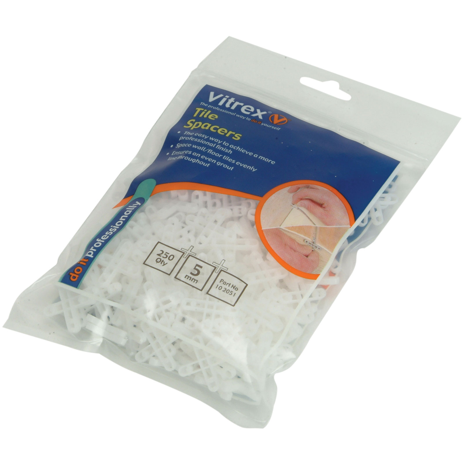 Vitrex Floor Tile spacers provide an easy way to achieve a more professional finish, spaces floor tiles evenly, and ensures an even grout line throughout.