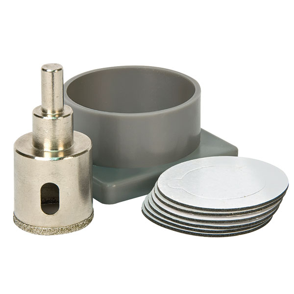 The Vitrex 10 2772 Diamond Tile Drill Self Adhesive Kit System offers both the necessary lubrication to extend the life of the drill bit and secure positioning for quick and accurate drilling. Includes water delivery and collection cups for clean drilling and effective cooling for the drilling surface.