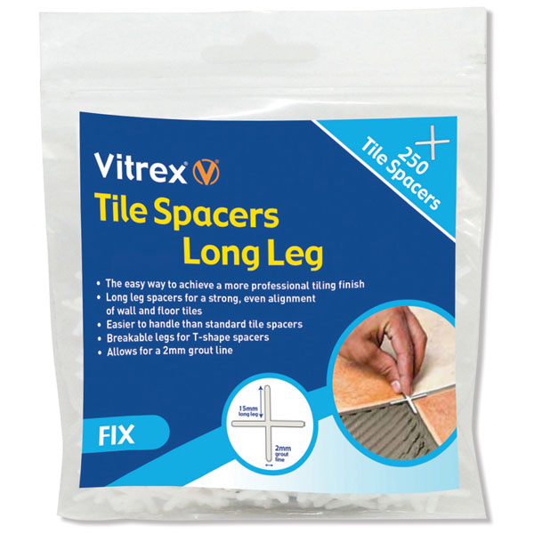These Vitrex Long Leg Spacers provide an easy way to achieve a more professional tiling finish. They ensure a constant and even spacing of tiles, allowing for the specified size in grout line.