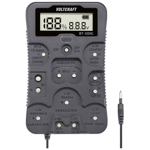VOLTCRAFT Battery tester BT12DIG reading range1.2 V.5 V 3 V 3.7 Vmu