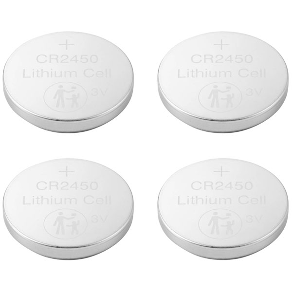 The VOLTCRAFT Button Cell CR2450 is a 3V lithium battery with a capacity of 580 mAh, available in a pack of four.