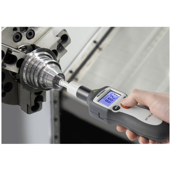 The VOLTCRAFT DT-30LK SE tachometer, manufactured by VOLTCRAFT, measures rotational speeds ranging from 2 to 20000 revolutions per minute.