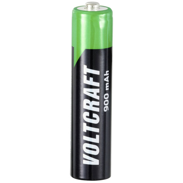 The VOLTCRAFT HR03 is a rechargeable AAA battery with a NiMH composition, offering a capacity of 900 mAh and a voltage of 1.2 V.