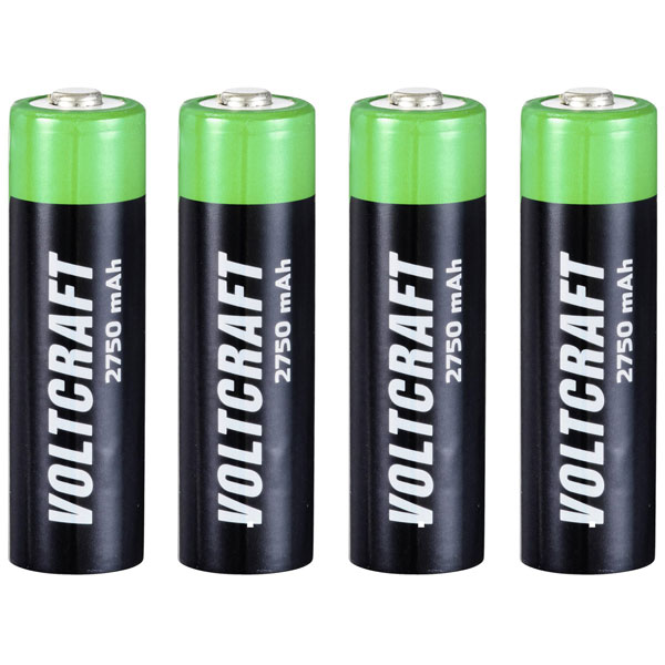 VOLTCRAFT's rechargeable HR06 AA batteries boast a capacity of 2750 mAh and a voltage of 1.2 V.