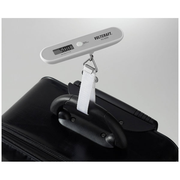The VOLTCRAFT KS-5000 luggage scales feature a weight range of 50 kg with a readability of 10 g.