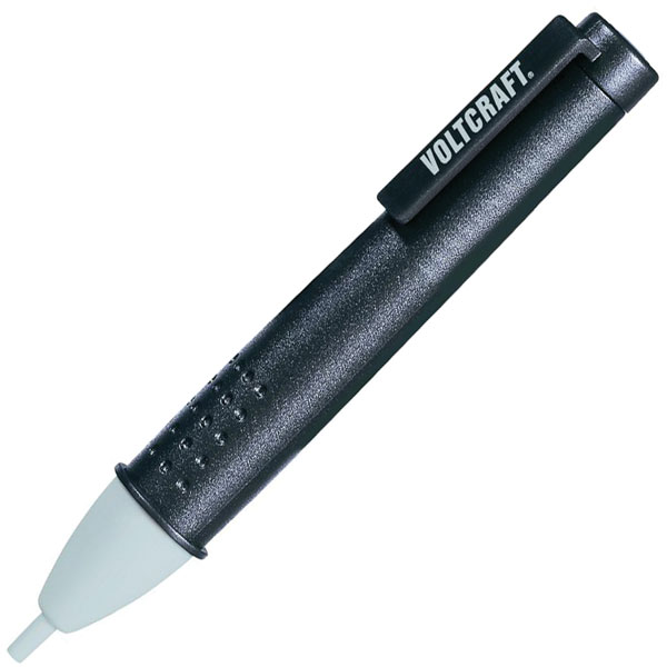 The Voltcraft MS-420 detects stationary electrostatic fields generated by AC voltage via the insulation without the need of direct contact to the plain conductor. A red light at the tip of the device and vibration are signalling the presence of voltage. In addition, a LED light is integrated to illuminate dark corners. The device is powered with 2x AAA batteries.