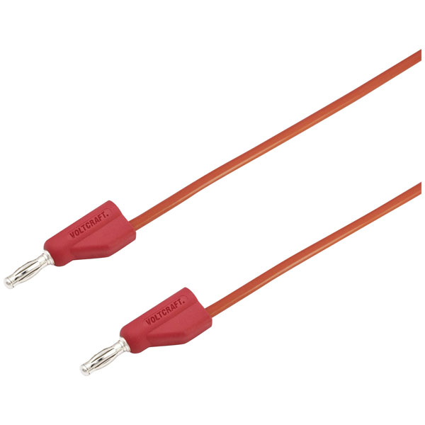 The VOLTCRAFT MSB-300 test lead features 4 mm banana jacks on both ends and is 2.00 metres long, available in red.