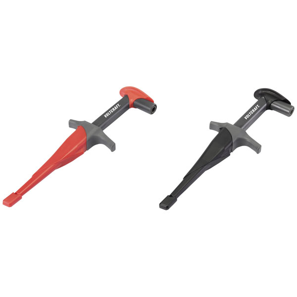 This set, identifiable by the code VC-8308585, is available in black and red, featuring crocodile clamps for secure electrical testing.