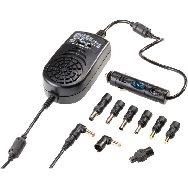 This car notebook adapter uses switched-mode power supply technology to convert the 24 V onboard voltage in your car into the input voltage required by your notebook.