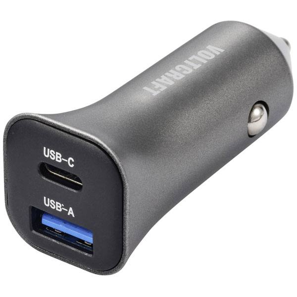 VOLTCRAFT VC-13990870 Car USB Charger Silver-black 38W 1xUSB-A 1xUSB-C