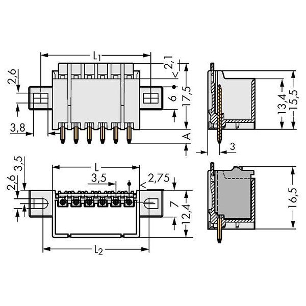 WAGO 2091-1408/205-000 picoMAX® 3.5 Male Flanged 8P THR Tape Straight Pk100