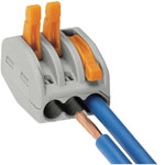 The WAGO Series 222 3-Wire Spring Connector 300V 32A Grey/Orange (Pack of 50) is the easiest way to connect and disconnect cables and wires. Simply open the orange-coloured operating lever until it clicks into place, insert the lead, and place the lever back into the start position. This connector is highly reliable, ensuring connection every time.