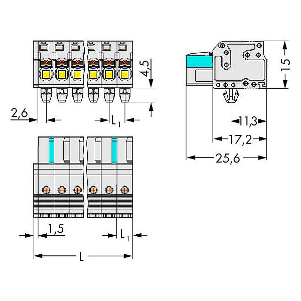 WAGO 2721-115/008-000 Female MCS-MIDI 15P 5mm Snap-in Feet Push Buttons