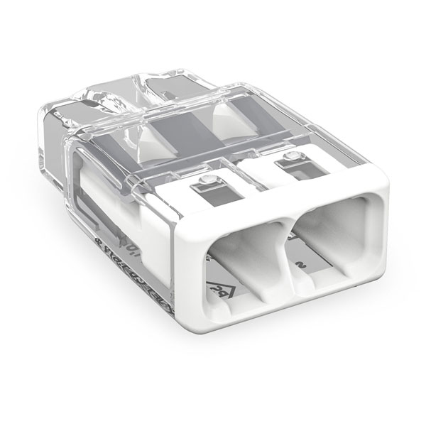 Quick and Easy to use. Simply push the stripped conductor into the connector. Once the conductor is pushed in fully, the connector grips and terminates the conductor. This simple system saves time on installation and ensures a good connection is made that can be visually checked using the transparent case. The connector has a test slot located opposite the conductor entry direction. This allows easy testing, even when installed.