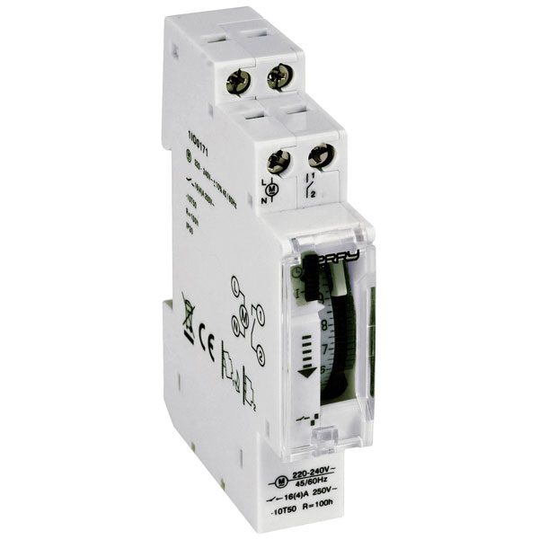 The Wallair 1IO0171 Timer is an analogue device designed for 24-hour mode with a power capacity of 3500 W. It features an IP20 rating and a power reserve, making it ideal for indoor applications. Typically used for automated control of electrical equipment, it is perfect for managing on/off cycles for devices like lights and appliances.