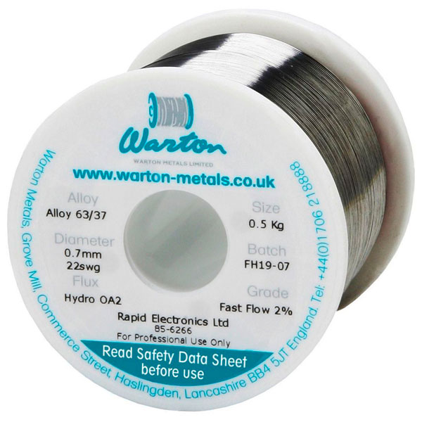 Warton metals hydro flux 63/37 OA 2% rosin-free, water wash, cored solder is a high-purity solder containing a colophony (rosin) free flux, ideal for hand-soldering applications where components can withstand water washing.