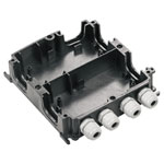 Weidmüller BG GH 10P 4XVG PT6 is a Plastic housing, FieldPower®, 223 x 181 x 42 mm, Polycarbonate, glass fibre reinforced, untreated, black. Plastic housing for electrical, electromechanical and pneumatic devices as well as PCBs. Suitable for use in mechanically and chemically demanding environments. Wall mounting can be achieved using mounting holes or mounting feet.
