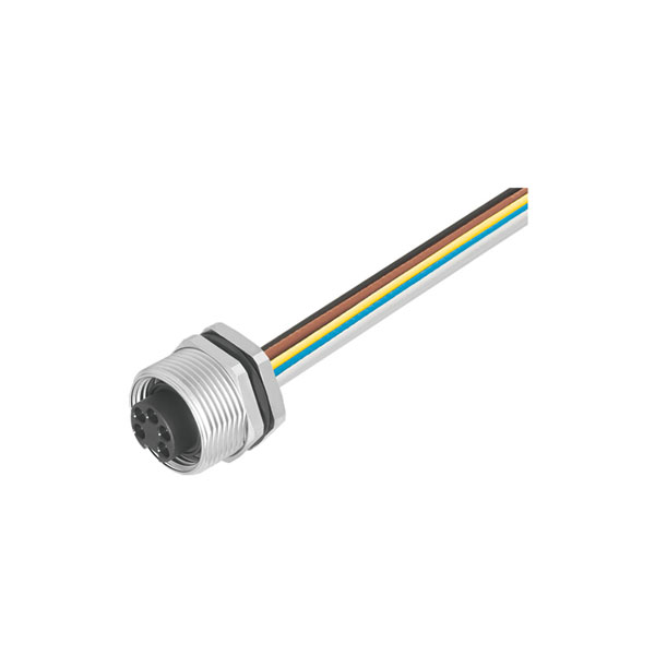 Weidmüller SAIE-7/8B-5-0.2U-H is a Round plug ,Built-in (with cable), Socket connector, 7/8", Number of poles: 5, 0.2 m, Cable gland: 7/8", 0.75 mm², PUR/ PUR. Round plug for installation. With cable connected.