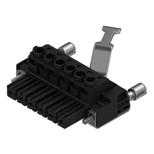 Weidmüller BVZ 7.62HP/06/180RSH150 SN BK BX is a PCB connector (wire connection), 1000 V, 57 A, Pitch in mm: 7.62, 10 mm², Number of poles: 6, Clamping yoke connection, Box. Pluggable PCB connection with innovative connection technology for safe and intuitive handling.