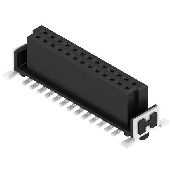 Weidmüller FFH6 S1/26V F1 B RL is a PCB connector (board connection), 2.8 A, Pitch in mm: 1.27, Number of poles: 26, SMD solder connection, Tape. Pluggable PCB connection with innovative connection technology for safe and intuitive handling.